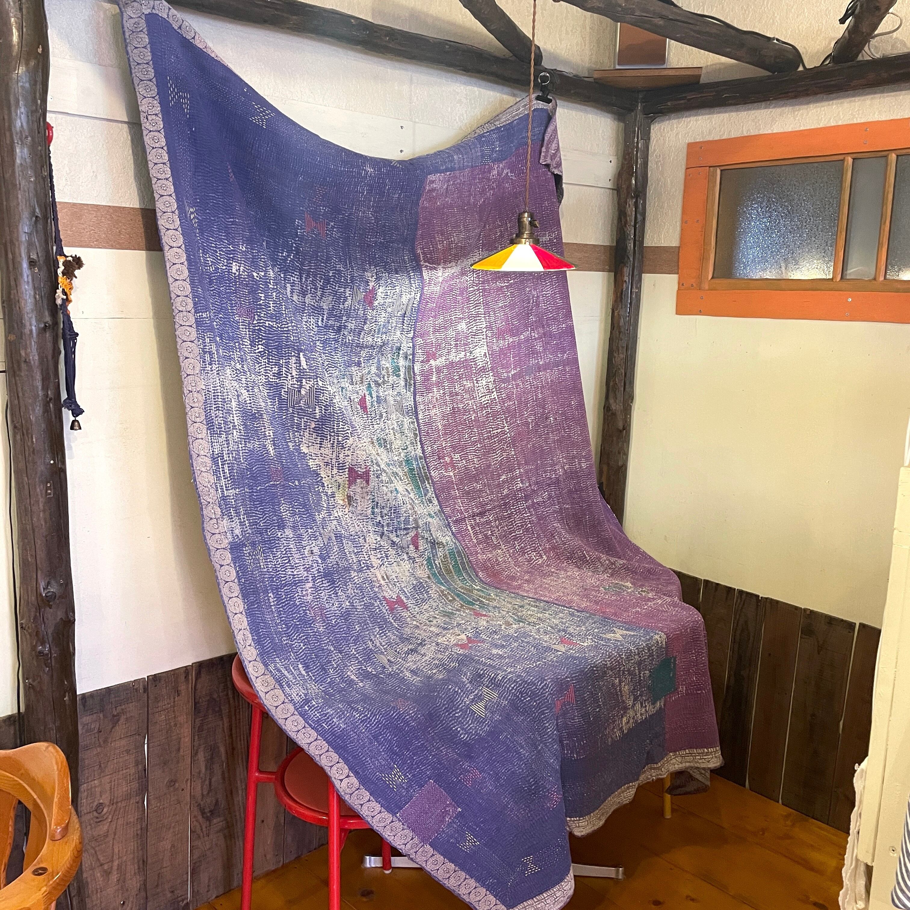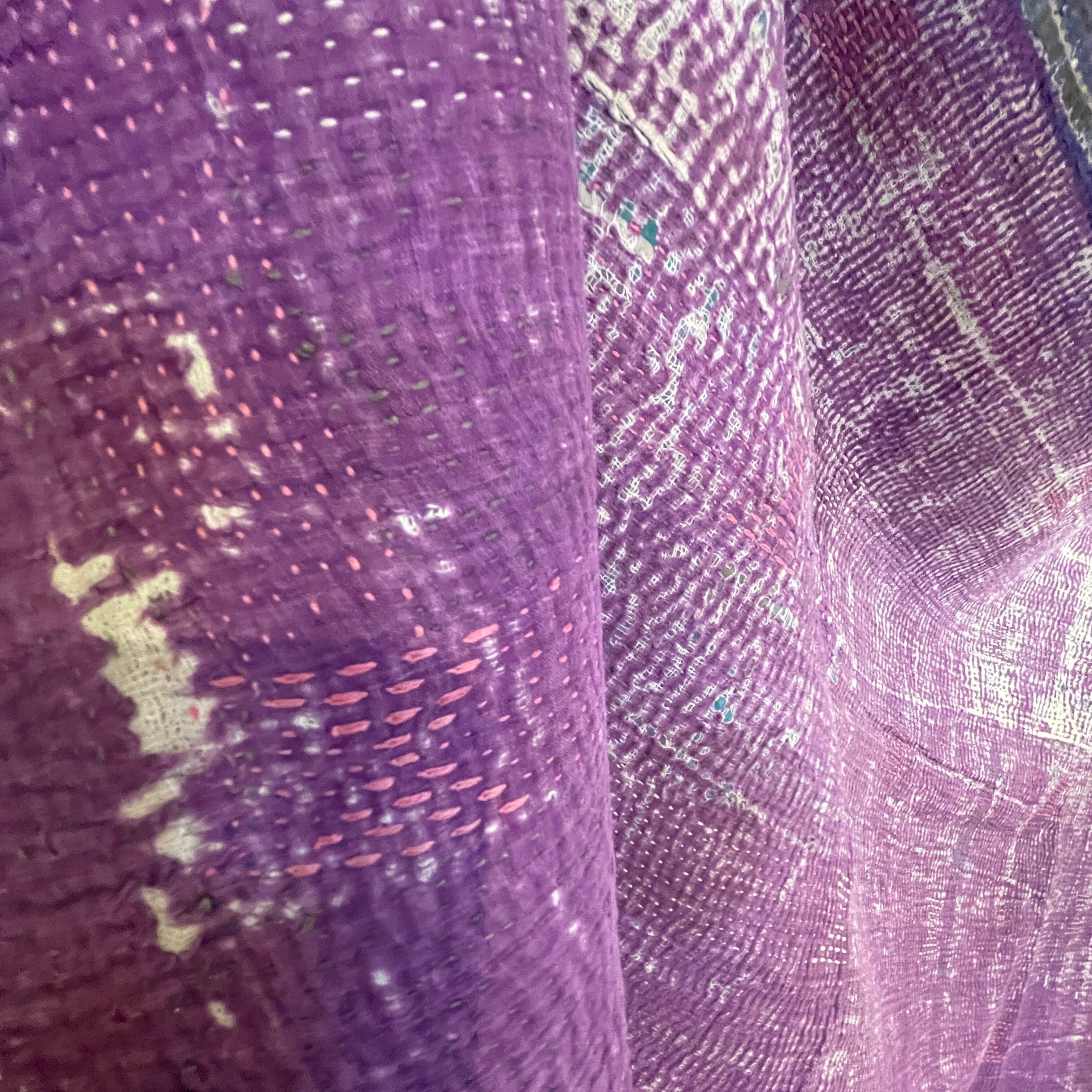 インド製ヴィンテージカンタラリーキルト パープルマルチカバー