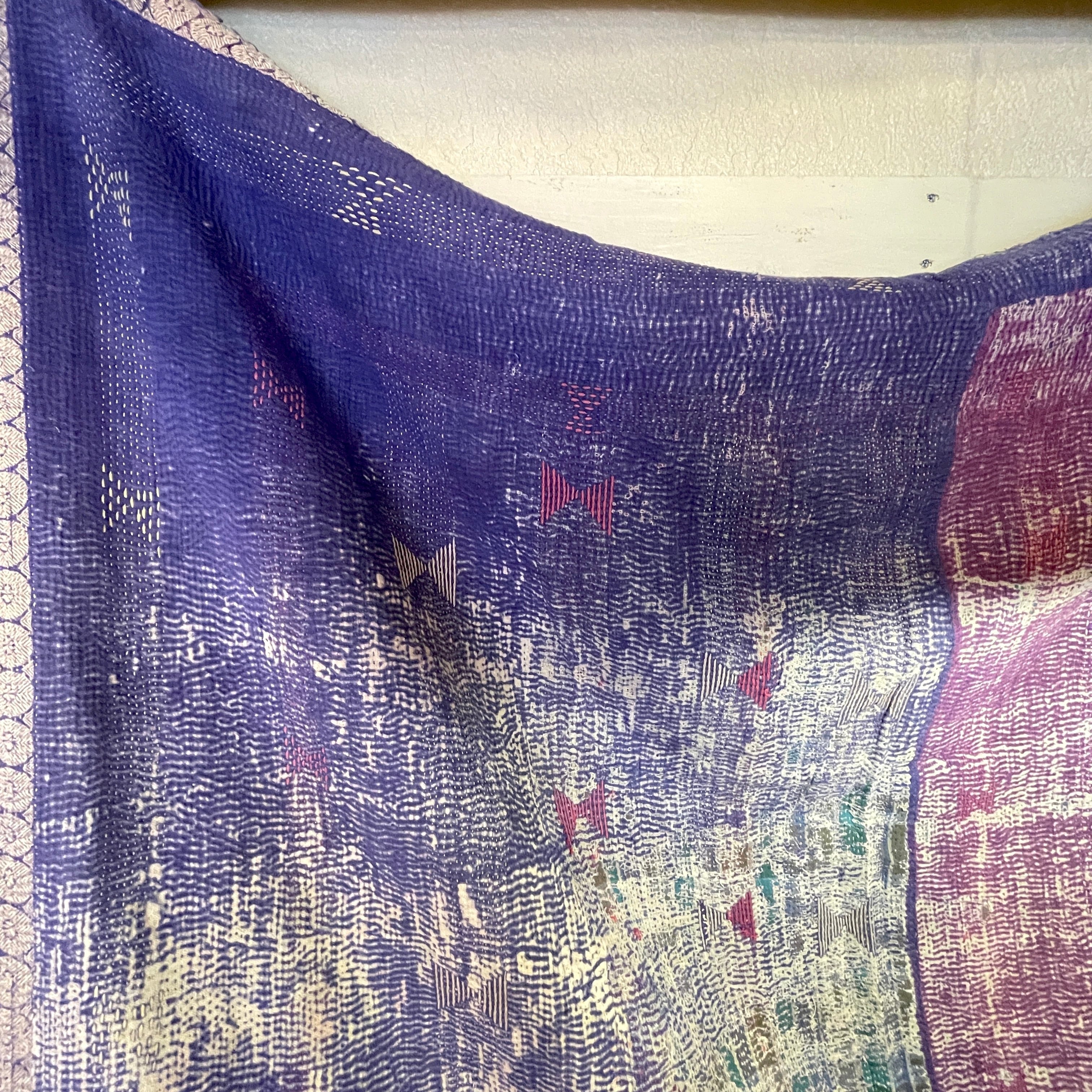 カンタはインドのベンガル地方の女性が家の中でサリーを重ねて刺し子刺繍を施し、主に赤ちゃんのおくるみや敷物として使ったのがはじまりだそうです。